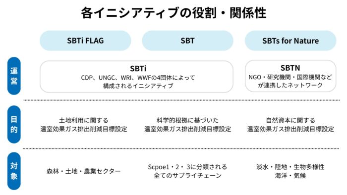 | SBTs for Nature | 水・生物多様性・土地・海洋などの自然資本への影響を数値化し、目標設定・分析・情報開示などに役立てるための削減目標設定フレームワーク |