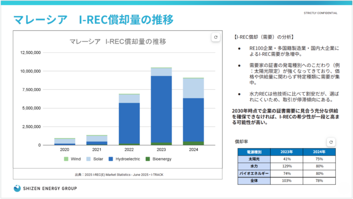 このようにマレーシアや途上国における再エネメニューは、価格が不安定であることに加え予見性が低いため、安定した調達が難しいのが現状です。