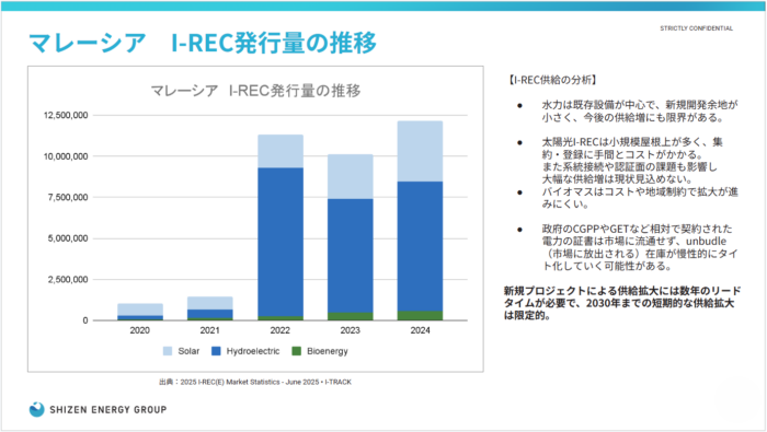 このようにマレーシアや途上国における再エネメニューは、価格が不安定であることに加え予見性が低いため、安定した調達が難しいのが現状です。