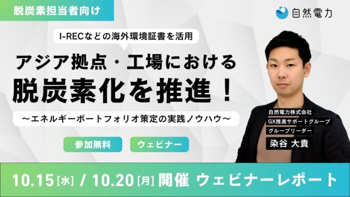 【ウェビナーレポート】アジア拠点・工場における脱炭素化を推進! ~エネルギーポートフォリオ策定ノウハウ~