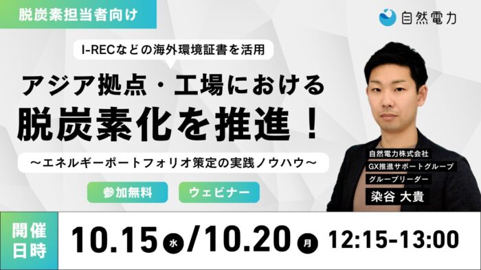 【開催終了】ゼロからわかる!I-RECなどを活用した海外拠点の脱炭素 ~最新動向から具体的な事例まで解説~