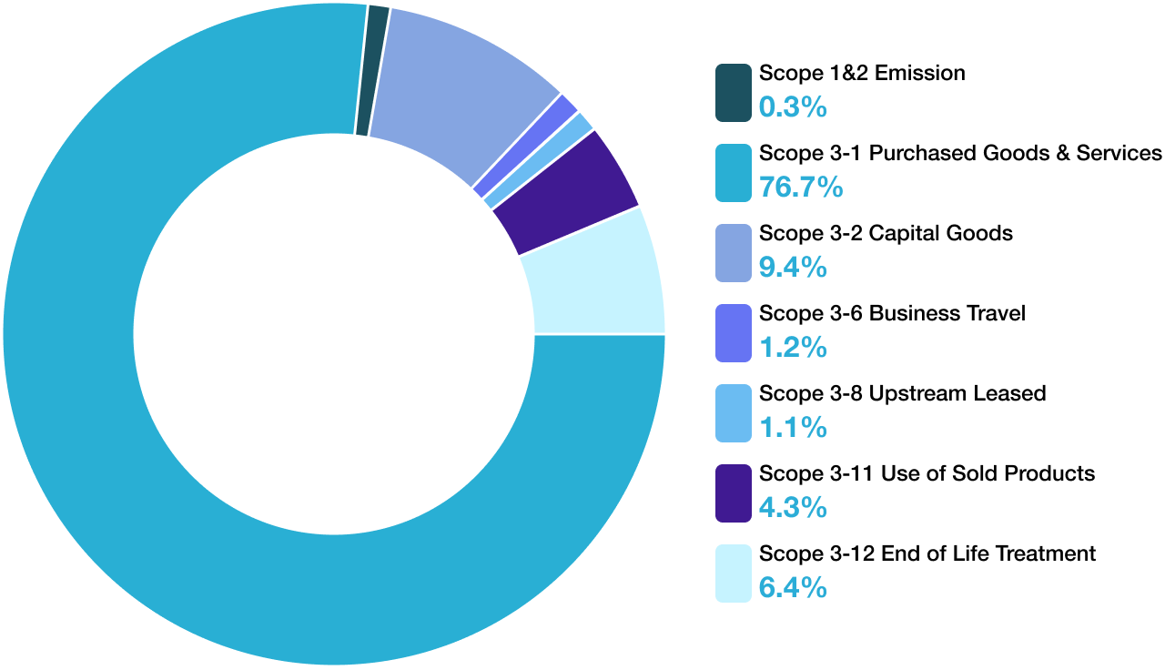 In 2024, 99.7% of our GHG emissions were indirect emissions (Scope 3).